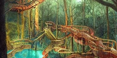 Playground Structures will be integrated into the Natural Forest Landscapes, specified uniquely for individual species, and for the culmination of child-play among many diverse species.